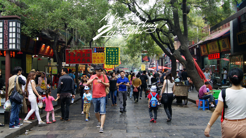 这是钟楼还是鼓楼我真的不记得了,反正就在这边边上就是有名的回民街,下了机场大巴过了马路就能看到了。这玩意貌似是售票的,我们没什么兴趣外加Nicky似乎多年前上去过,就没有理睬了,直接去回民街看看有什么吃的了,毕竟大家都饿了!