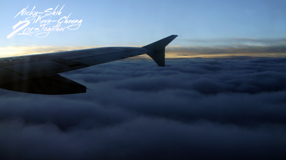 这一程的云真的很美,我和Nicky几乎都放弃了睡觉,静静的看着窗外的变换,因为整个航程中会经历日落,所以太阳和云海的呈现几乎隔几分钟就变换一次,这种美差点就让我忘记了下飞机后就要和九寨的司机打交道的事情了!Shit!