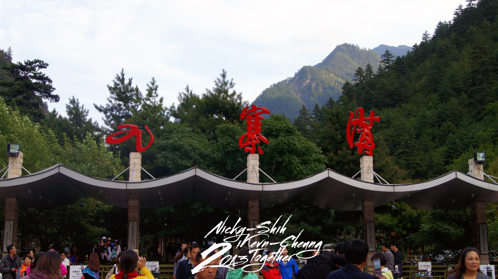 从宾馆出来,走了大概10分钟就能到九寨沟 景点门口了。10月1日国庆第一天,没有想象中的人满为患,我们折腾到早上9点多才到门口,售票口排队的人也不算非常多。我们是网络订票所以要在小二楼拿票,拿票的时候要提供学生证,因为我们定的学生票!what?学生证?别问我,我不知道,万能的淘宝去吧!