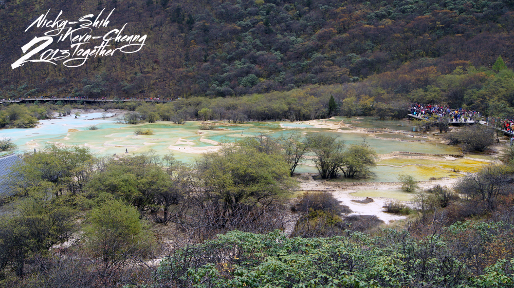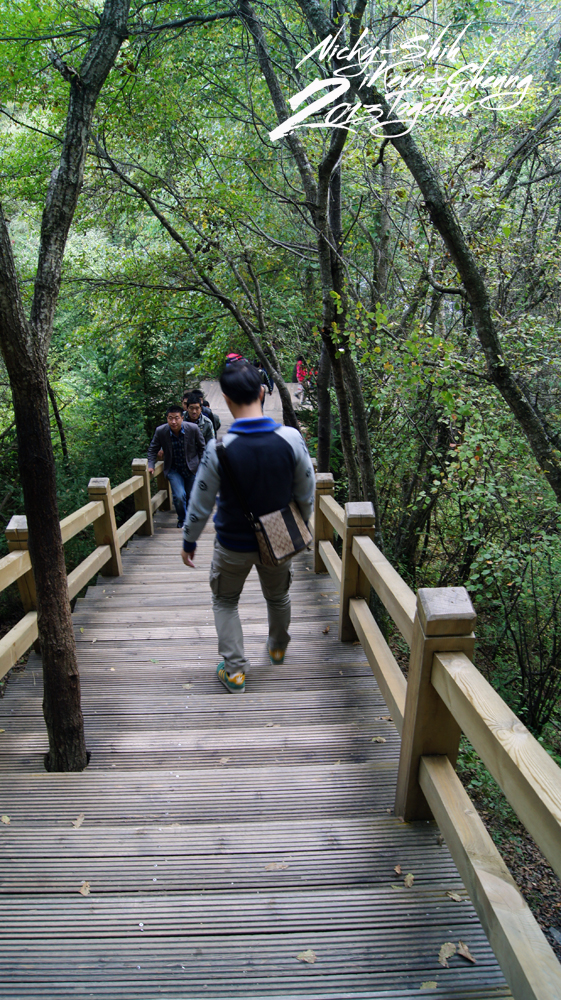 从树正寨往犀牛海 走的方向,栈道上慢慢的全是人,我和Nicky还一直抱怨人太多了。当然我们当时没想到10月2号的九寨沟 旅客事件,要不然我们也不会抱怨了。