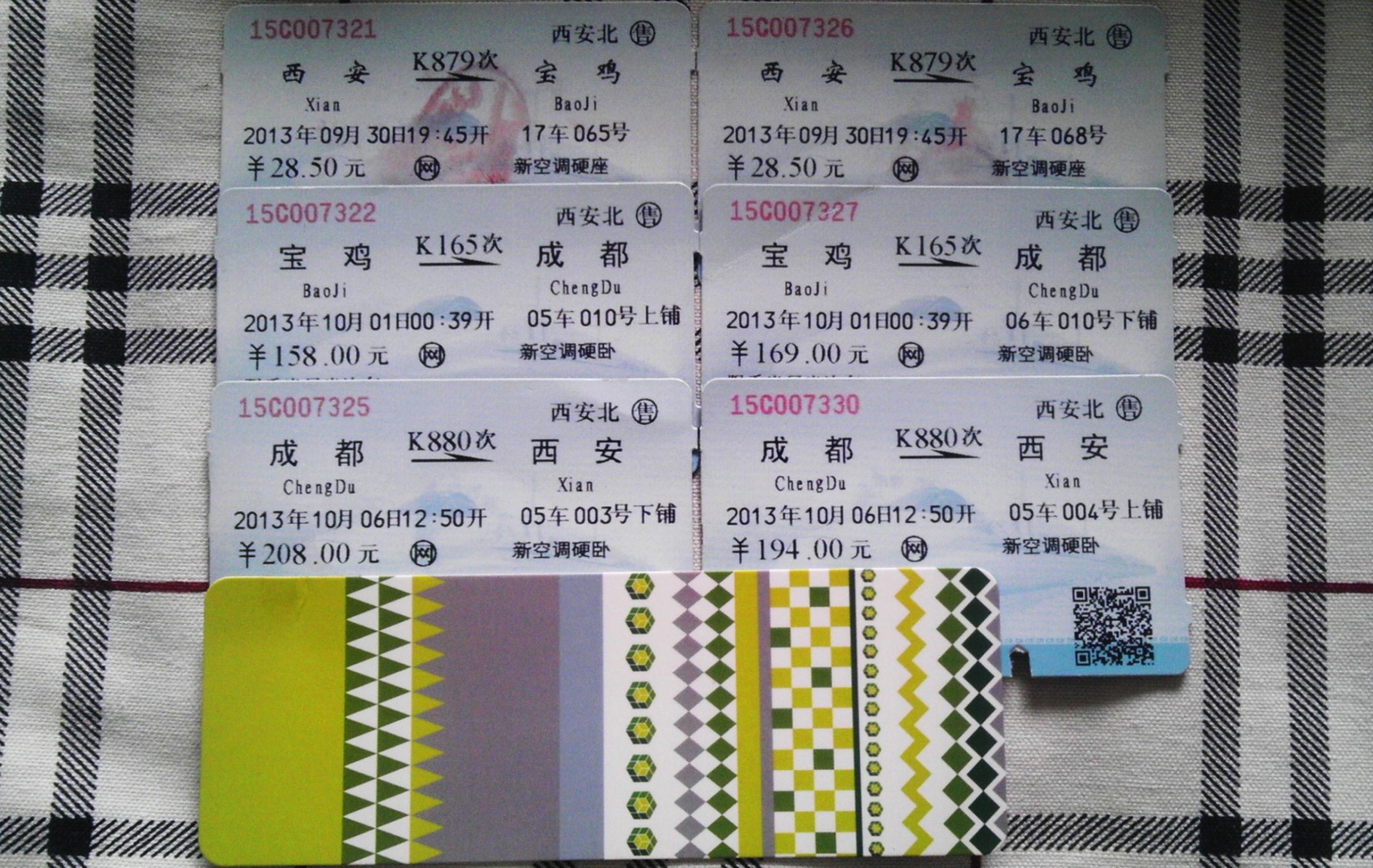 9月30日,列车向着宝鸡方向开行,一通短信传来,原打算在成都住朋友家的计划泡汤,他们新换了住址,离市区远了,为了不在车上耽误旅行时间,我们决定住宾馆。苦逼的火车上信号不好,车到宝鸡后,直奔KFC,抱着手机订宾馆。眼看开车时间都要到了(PS:祖国真给力,生日当天送大礼!)