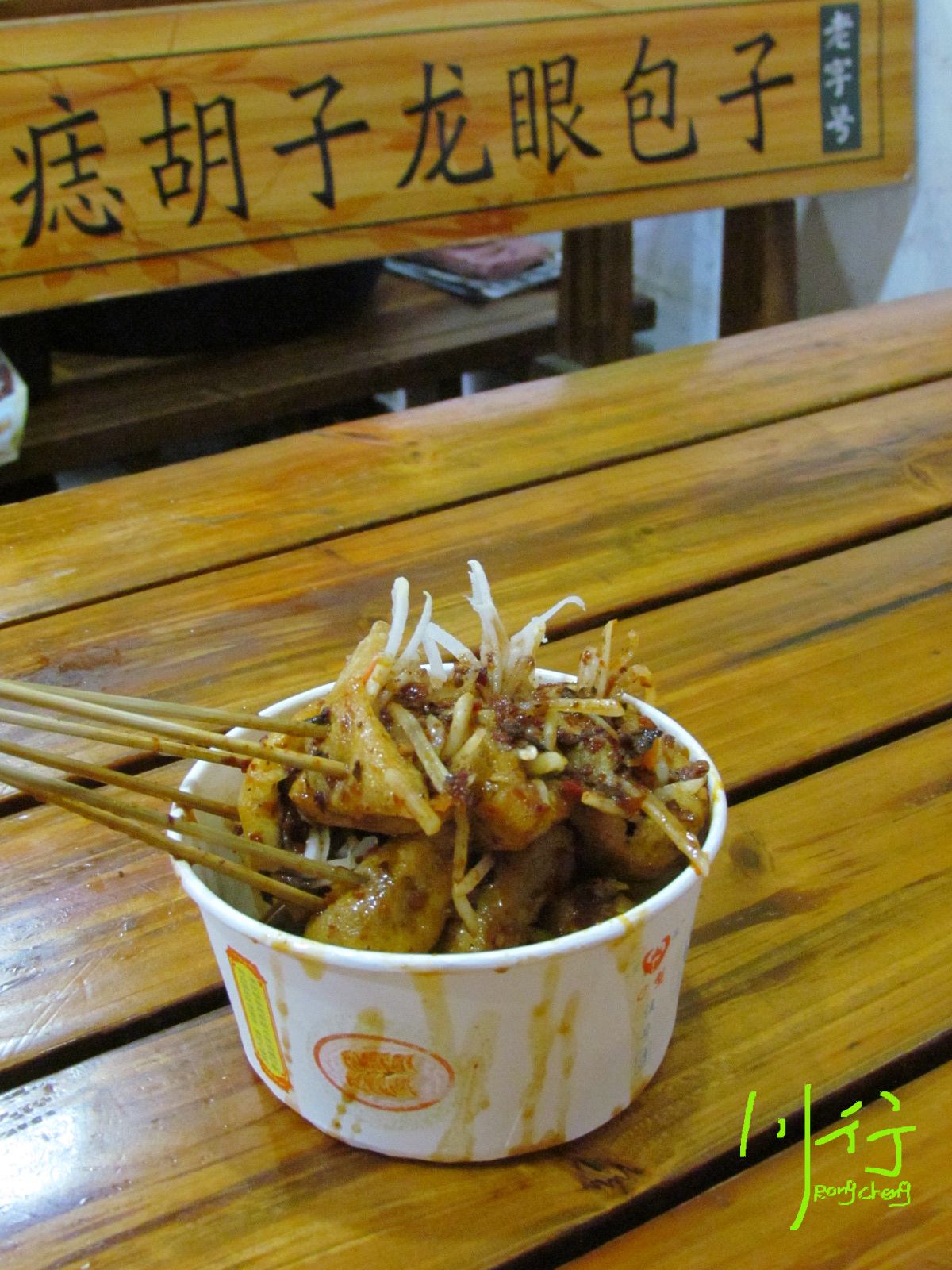 卖小吃的老伯用地道的四川话说,“我们家的包子要zan zhuo(蘸着)汤,一口一guo(个)的吃,一定要一口一guo(个)。”
