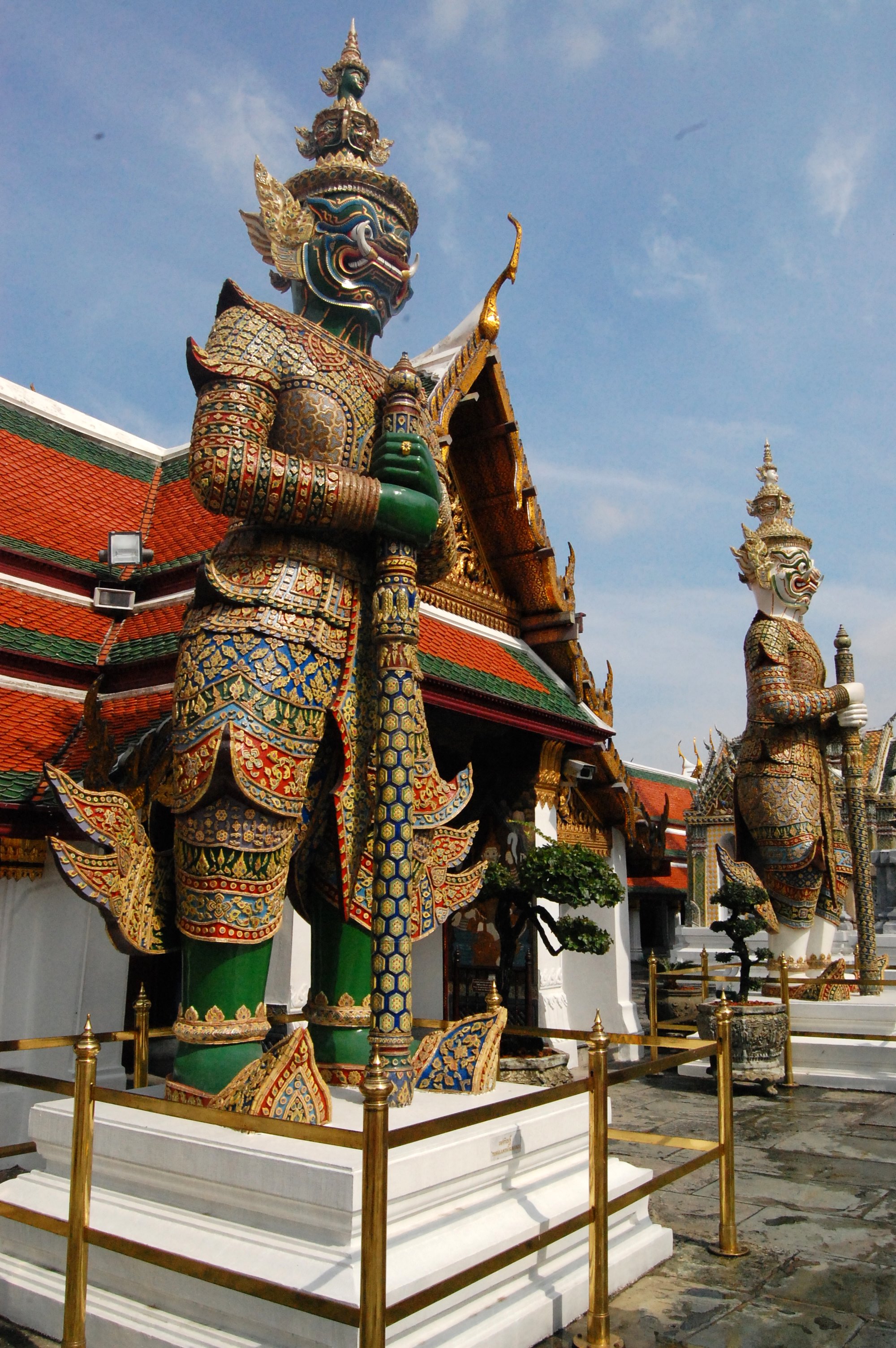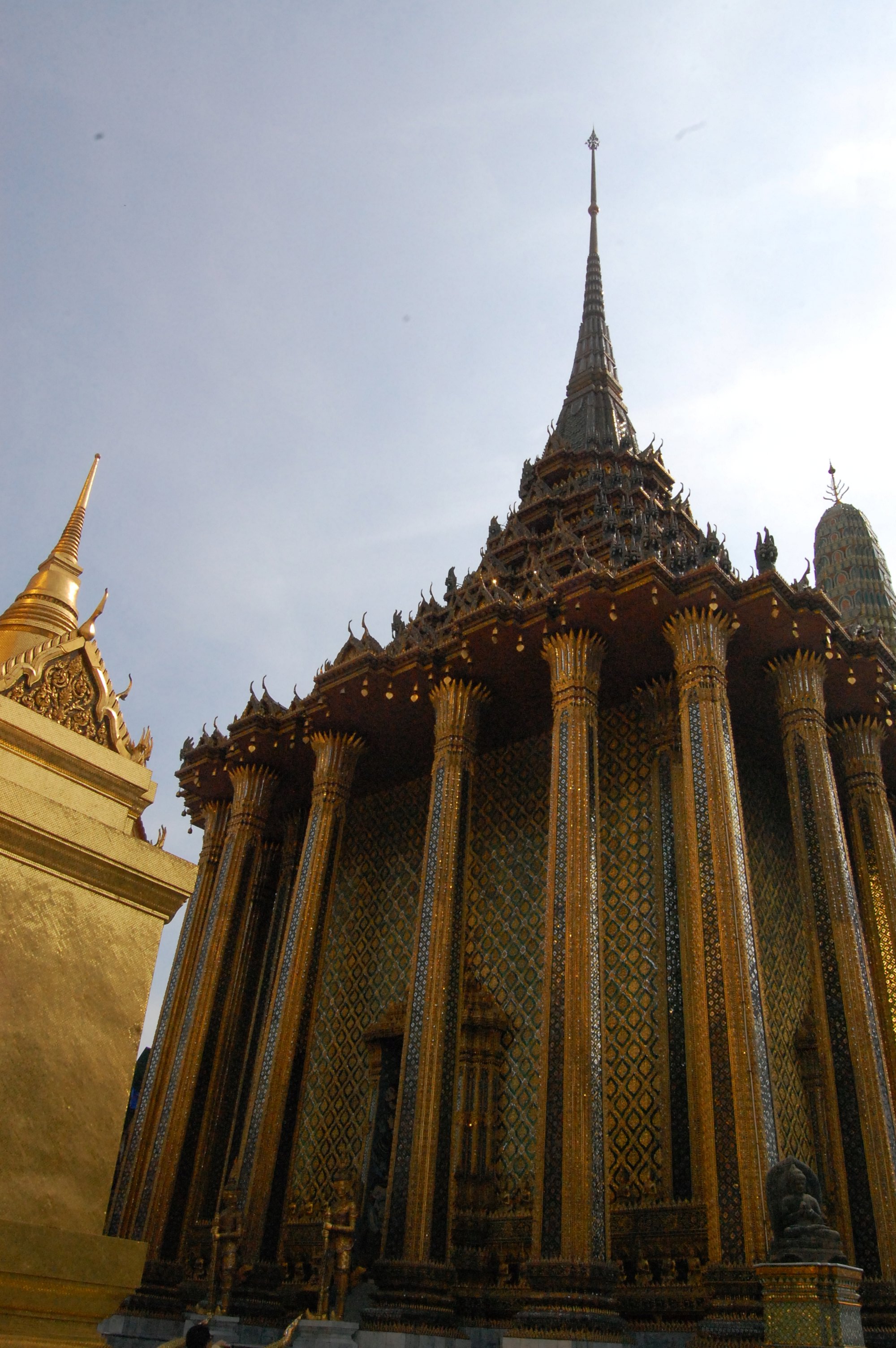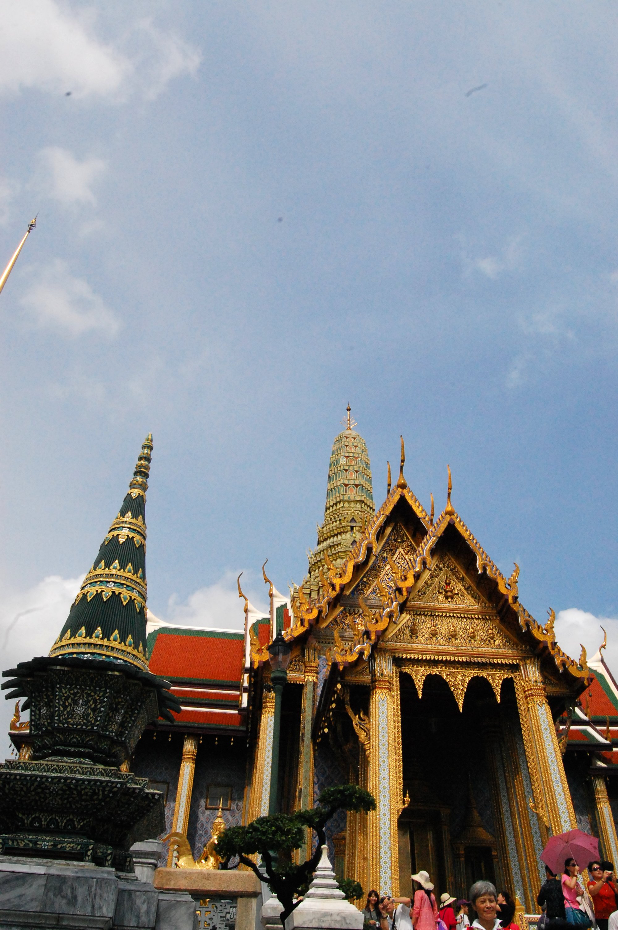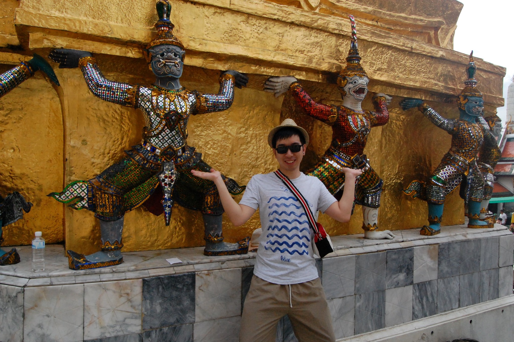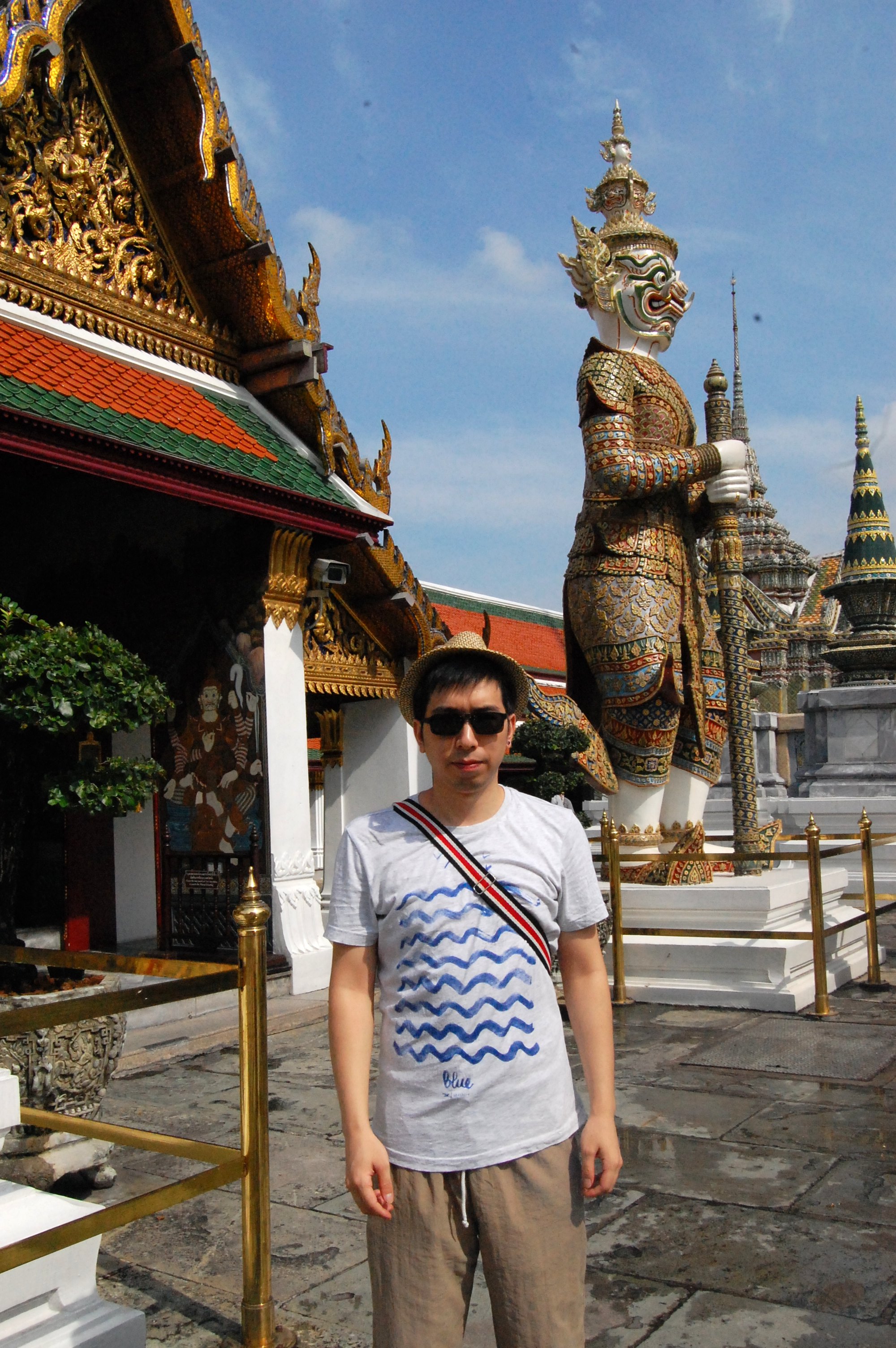 大皇宫的门票500B一张,里面还附带了一公园的门票,这不是强迫消费吗?那个公园最后也没去,因为人太多,天气实在太热了。还有在大皇宫里可以听到中国的各种方言,也可以看哪个导游在讲就跑过去蹭听,还蛮有意思的。大皇宫不是很大,和中国的故宫比那真是没得比,不过大皇宫给人感觉还是很有那种金碧辉煌的感觉的,听旁边的导游说大皇宫里墙上镶的都是真的宝石,后来因为不知道它的价值都拿来送人或被别人挖走了,现在镶在墙上都是玻璃。我想泰国人有这么傻吗?宝石都不知道是值钱的?