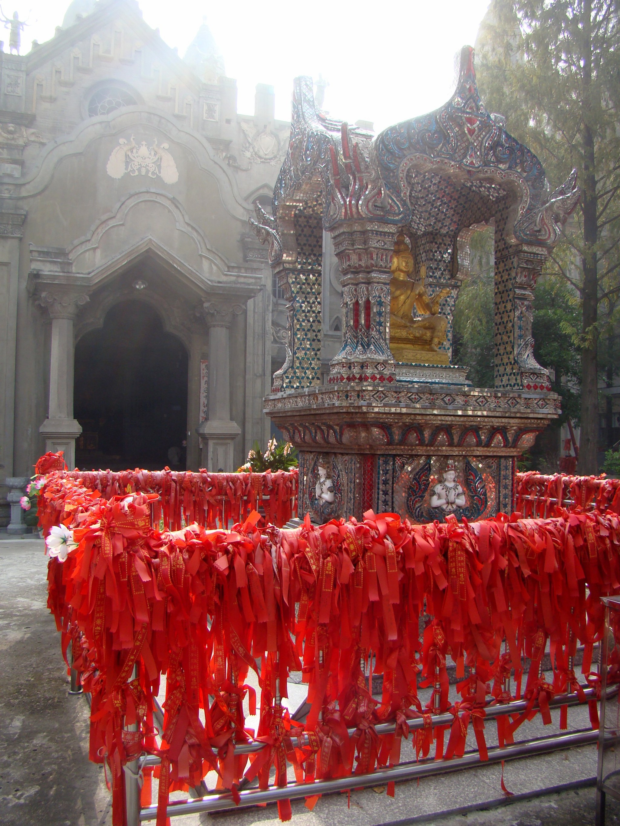 吃好饭就去了武汉的古德寺,上次来没有去过,这次刚好住的近,就去逛逛。进去不用买门票,不过要买香才能进,这不是变相的卖门票吗?算了才十五块,不和他计较,香我也没拿因为我自己是信基督教不可能进去拜拜的,只是参观参观。其实这古德寺和这次旅行还有点关联,因为它就是仿东南亚的建筑,里面供的佛也是泰国那边的佛,在广场上就有个四面佛。和我在泰国看到一模一样。