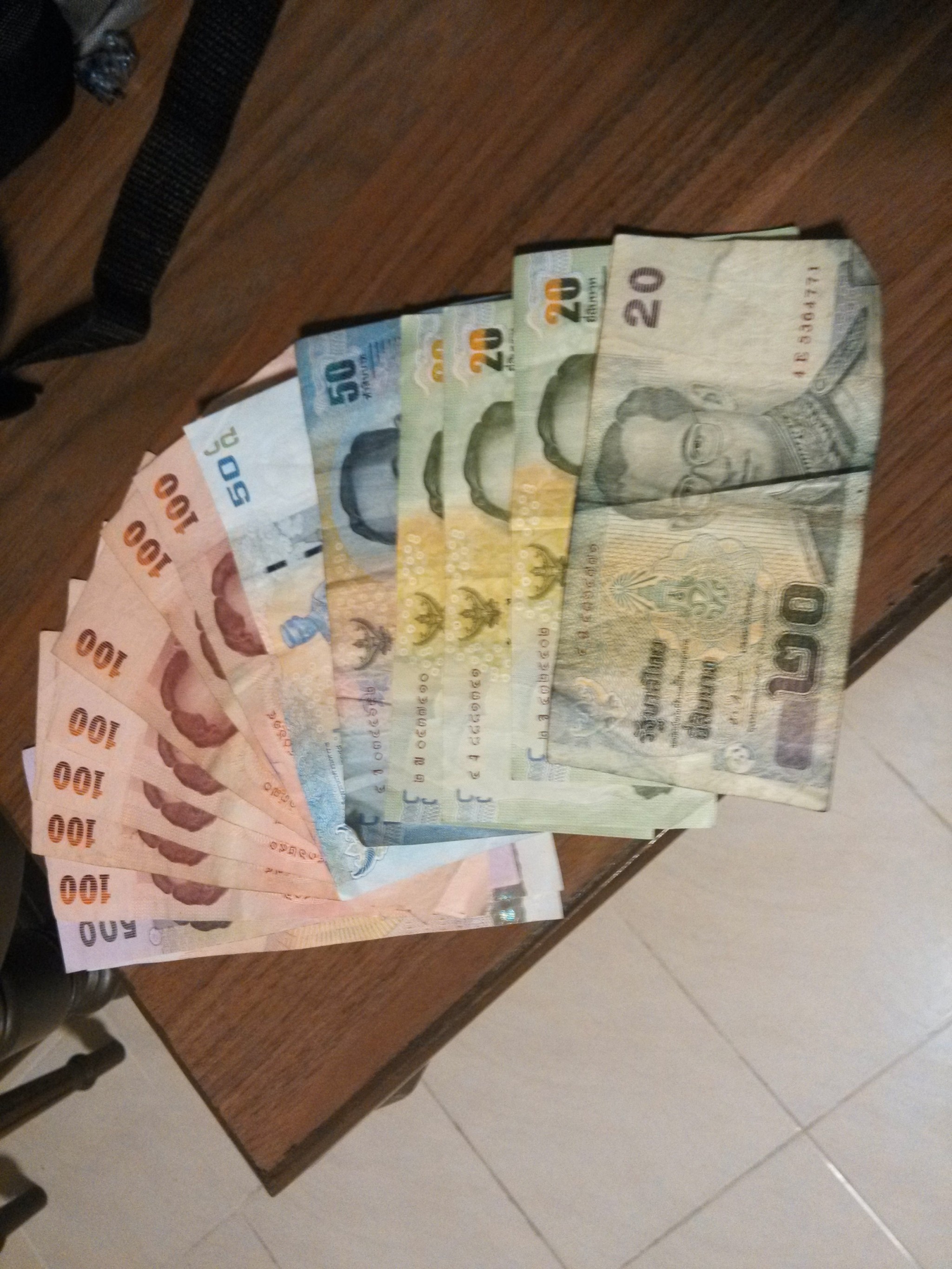 在机场取了5000B 相当于rmb900多,我去的时候汇率还是比较划算。据说现在人民币越来越值钱了,不知道该高兴还是担忧。在机场门口打了个的,登记的那个人说要给司机50小费,还有上高速的过路费要自己付。第一次坐,没经验看师傅说可以打表就坐上了,到了考山路的时候表上是200多,司机说只要给他250就可以了,加上过路费好像120.一共花370B。还觉得自己比较能干没有被宰,结果第二天去大皇宫的时候碰到在飞机上坐我旁边的一对情侣,他们说他们打到考山路只付了打表的钱。200多一点,以后看来还是要好好看攻略啊。要从机场另一个出口打的可以不用走高速也不用给小费的。