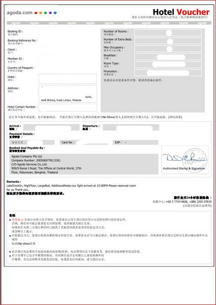 我是在Agoda订的会发邮件到你邮箱的,下载出来打印就OK。