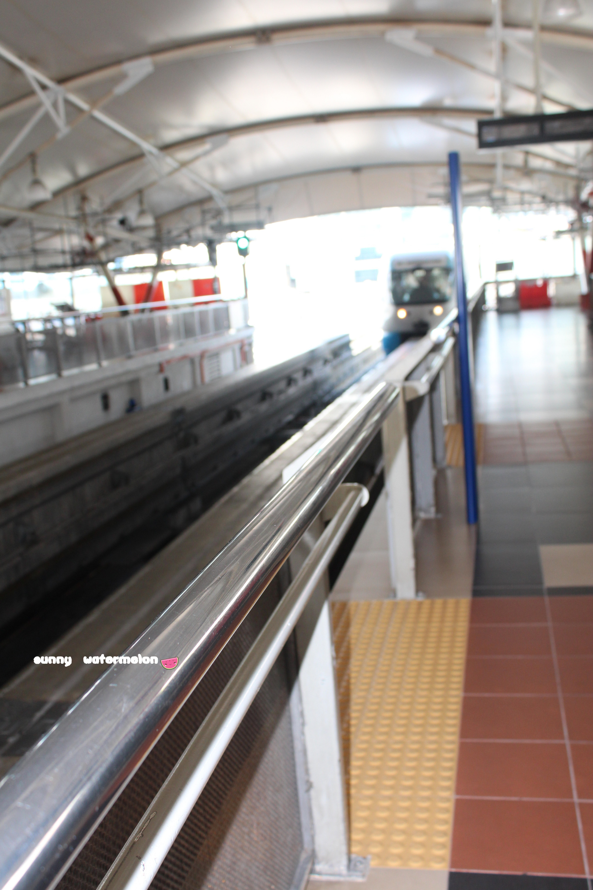 噜噜噜,地铁进站啦~~做到总站KL SENTRAL之后下地铁出来之后啊往右边走一段十字路口过街然后左边的路顺着进去就可以啦,一直走就回看见买票的亭子哦。