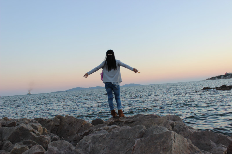 一年之隔再次看到大海很兴奋啊。我想,每个人的心里都有一个大海情节吧。每次看到大海,才知道思念的距离有多远。每次看到大海,那些心底的思念就会自然泛起。
