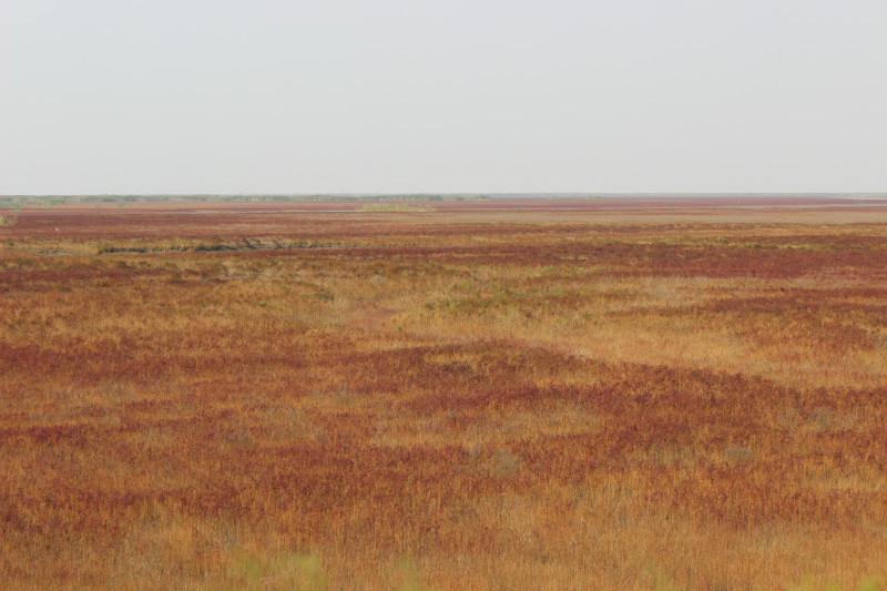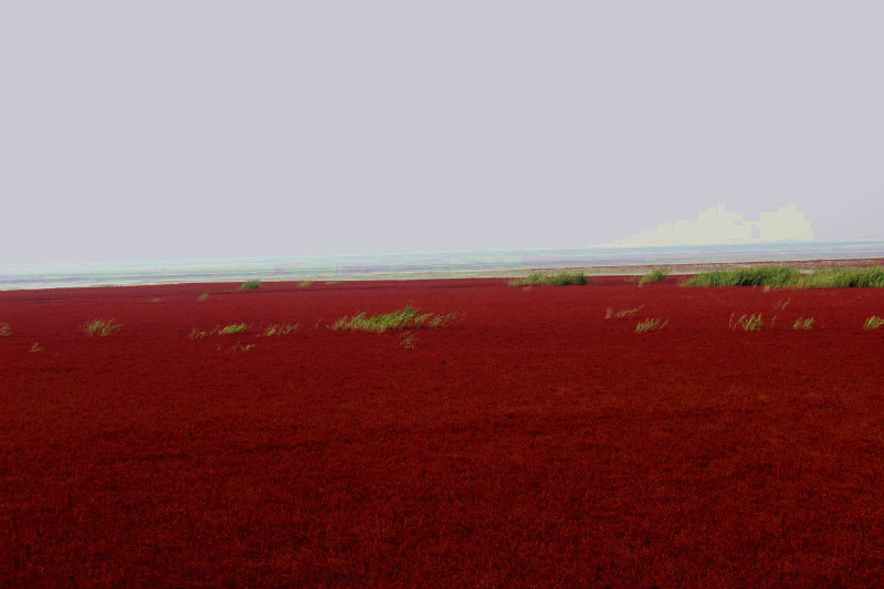 初见红海滩 。这是靠近内陆的一面。颜色还比较浅。