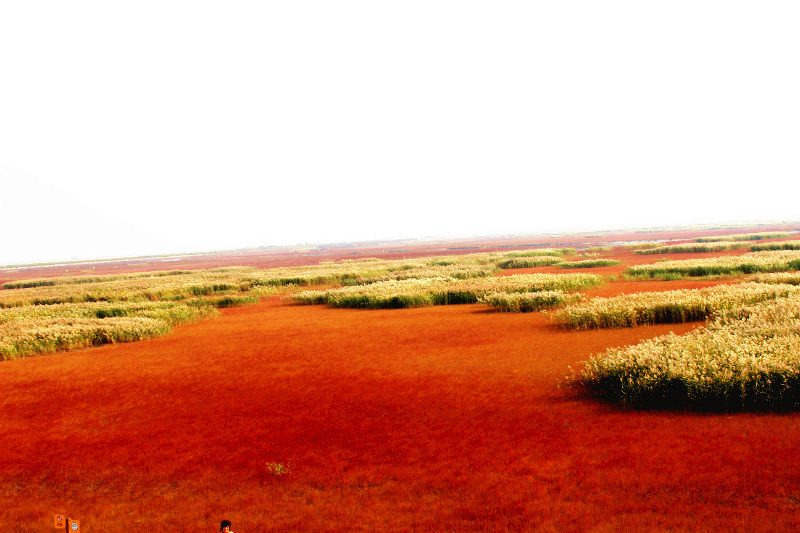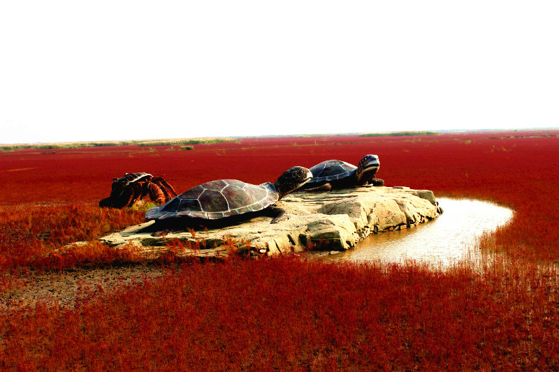 熟知盘锦 ,是因为某一年在某本杂志上看见那片红海滩 ,顿时惊艳,为之倾倒,从此就一直挂念着那片似乎已经等待了千年的红海滩 ,一直想要去亲眼领略她的美丽。2010年的十月曾和马小前约好同去的,结果却夭折在北戴河 。两年之后终于成行。