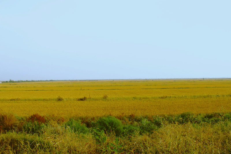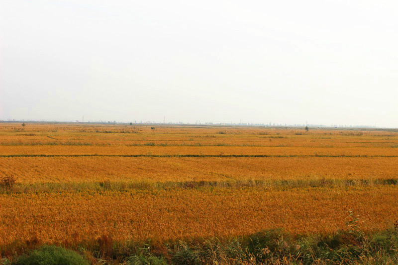 我想说,锦州 到盘锦 的这一路是我最欣喜的。沿途几十公里全是大片金黄的稻田,没有山峦的起伏,肆无忌惮的蔓延至天际。对于这种景致,我向来是没有任何抵抗力的,可惜高速路上不好停车,又要赶时间,不能下车拍照,我只能把种种美好记于心底。