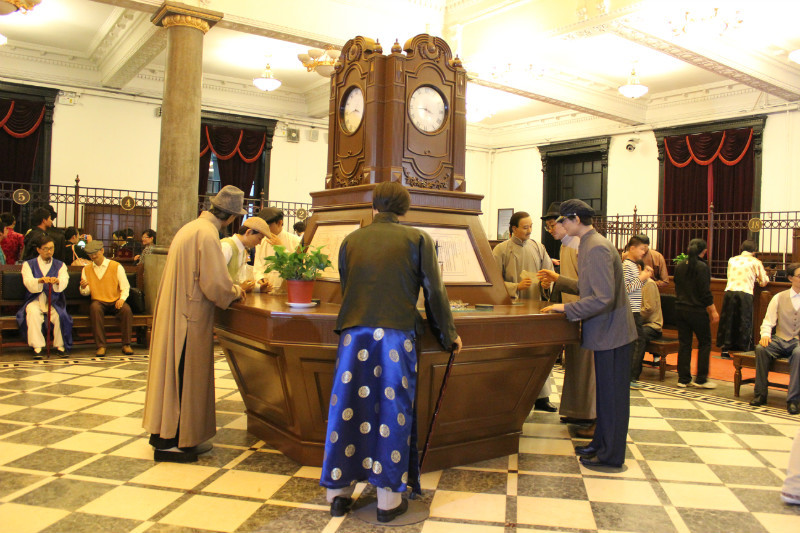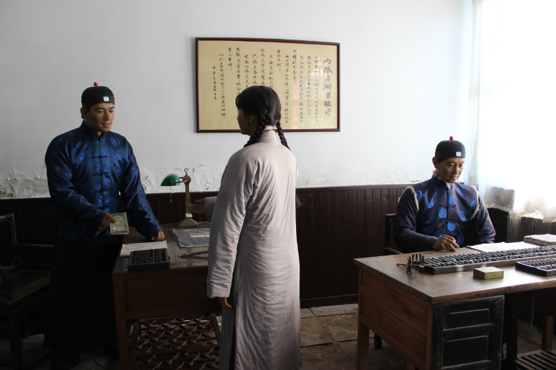 走进大厅,映入眼睛的就是各种蜡像,还原了当时边业银行的繁荣景象。。。