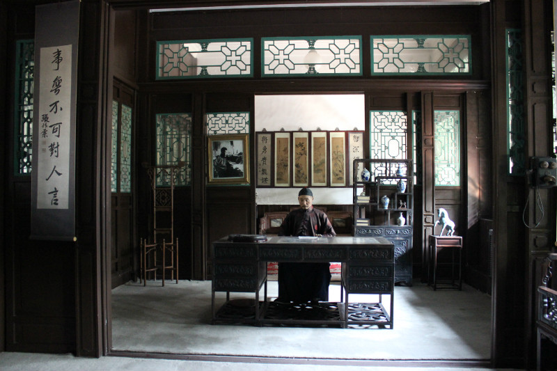 西院内有很多蜡像,还原了当年帅府的各种生活场景。这是承启处,就是客人来拜访先进行通报的地方,通俗点就是门卫吧。