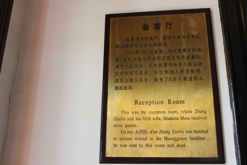 大青楼老虎厅,因拜访老虎而出名,是张氏父子接待重要客人的地方,也就是枪杀杨、常二人的地方。