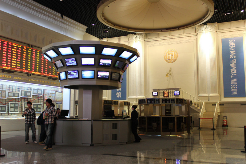 模仿的早期纽交所的样子。。。里面的电脑可以直接查询各种走势。。。