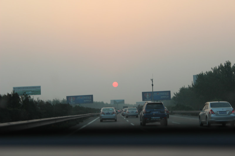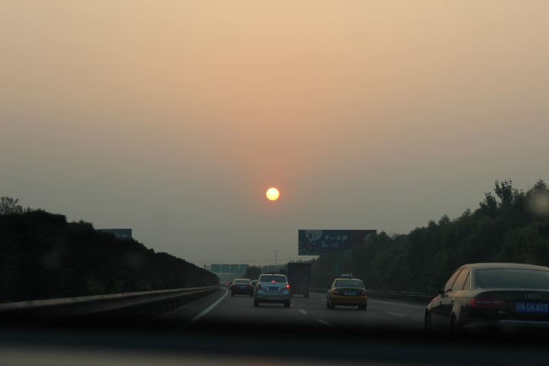 我们在高速上追逐这这轮落日,直到它颜色越来越浅,最终消失在地平线。。。