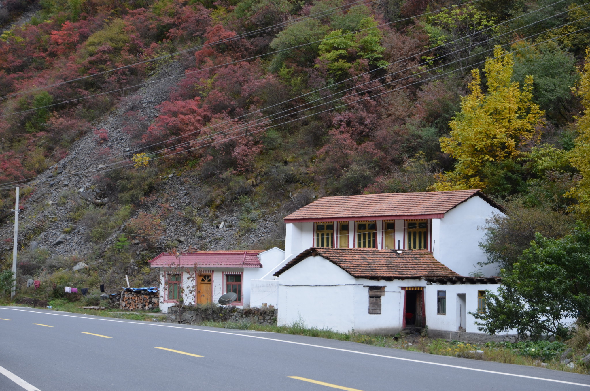 路边的村寨,鲜花盛开