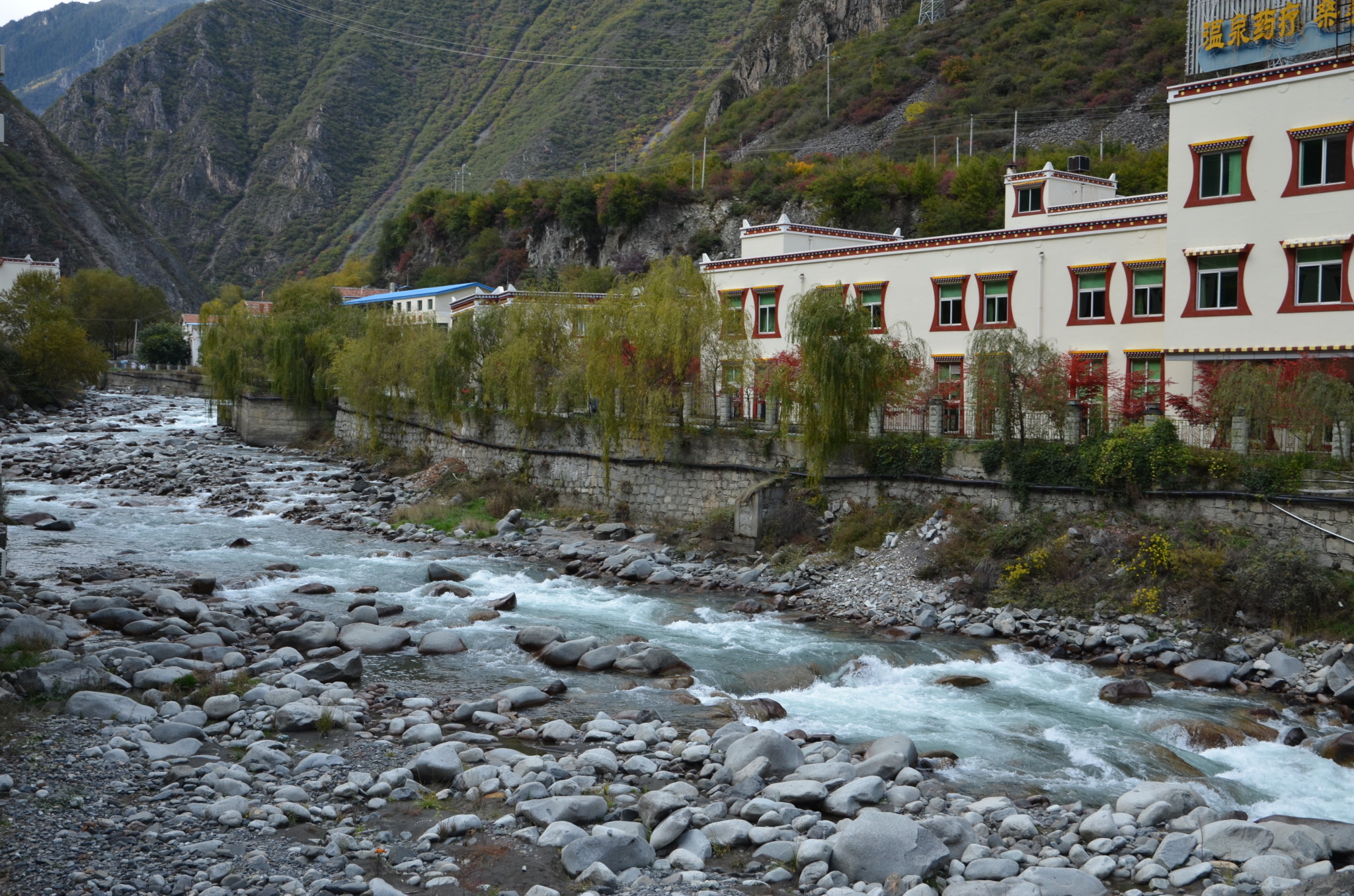 古尔沟很多泡温泉的客栈,我们没有去泡,在那里停留一会,看看就驱车到毕棚沟沟口找住宿了。