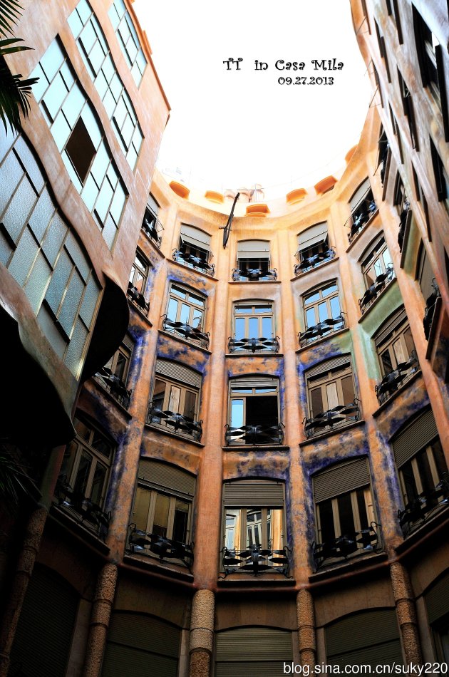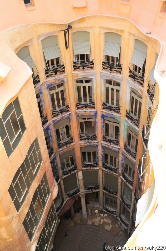 进入米拉之家首先会步入一个露天天井,抬头可以看到米拉之家每间房间的内部窗户,高迪将每间房间都设计成双面采光,光线由采光中庭和外部街道进来。