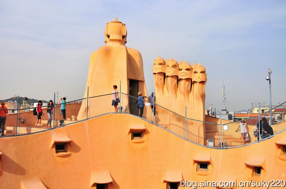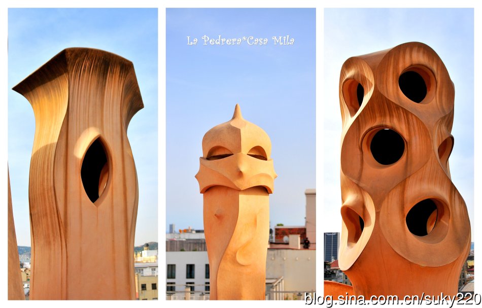 米拉之家的顶楼共有30个造型奇特的烟囱。造型犹如戴着面具的侍卫,好似守护着这幢建筑。