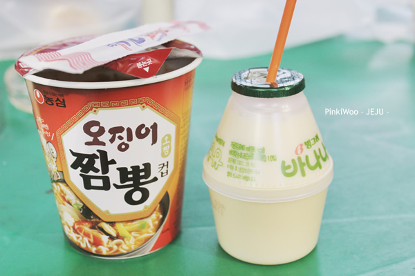 听两位小哥说,汉拿山上有帮忙泡好的方便面买,爬山的各位不用增加重量带干粮,但是要自带餐具。