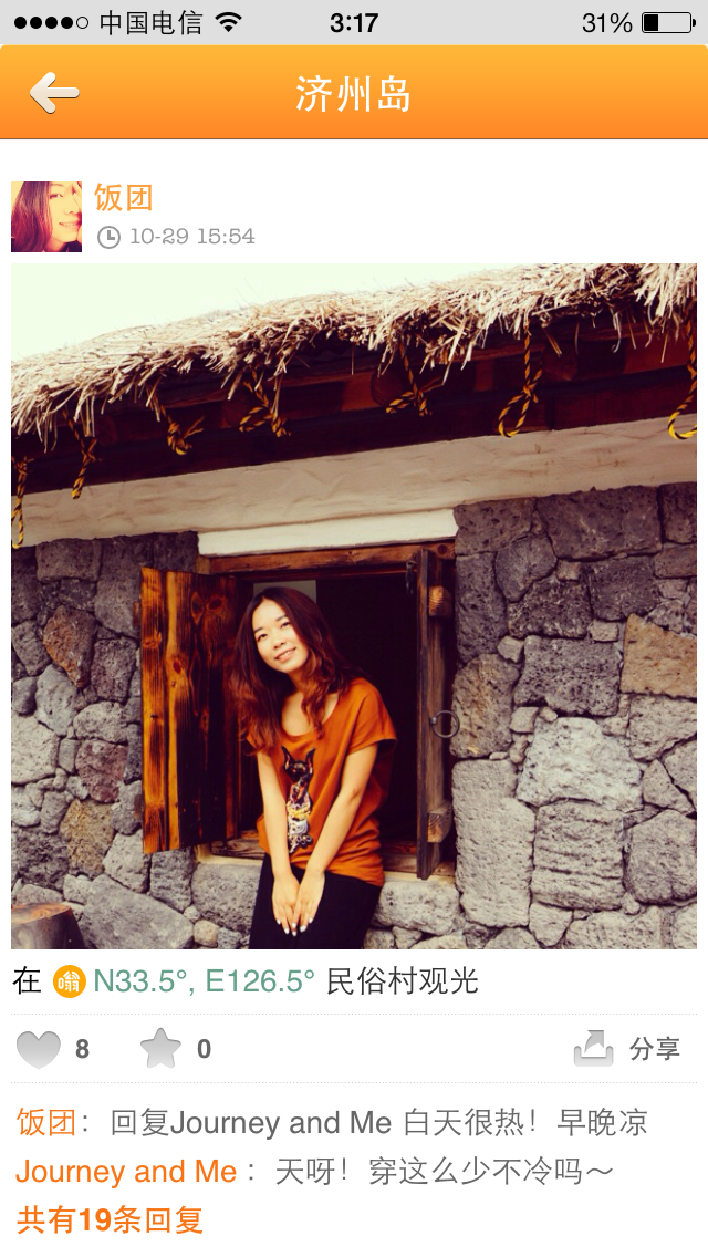 朋友很早以前给我介绍济州岛 旅游局的姑娘,说你们都爱玩儿,应该能擦出火花。