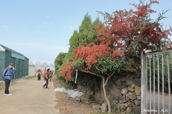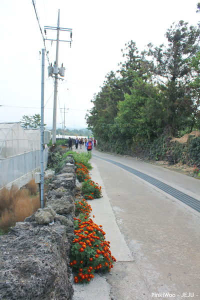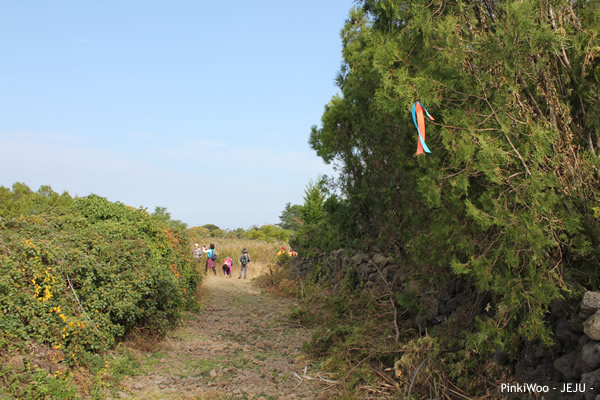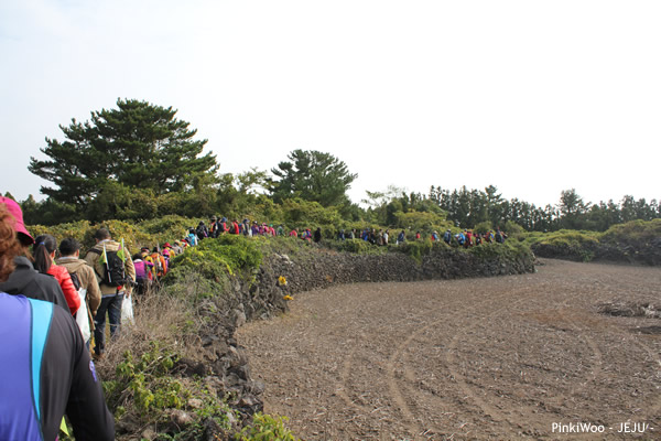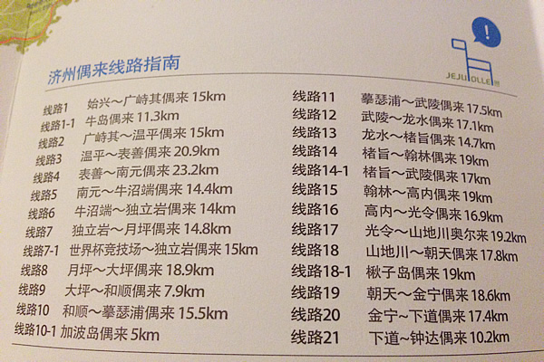 这是济州偶来中最先开发出的一条线路,是由寄生火山与海组成的“寄生火山——大海偶来”。从淡雅美丽的始兴 小学出发,途经四季常青的草原,登上抹眉岳,卵岳后,城山日出峰 、牛岛和像解开的包袱皮似的平原和大海一览无余。 黑色石篱笆环绕着田地 ,大大小小地一个挨着一个形成田野,这仿佛是用各色美丽的布料点缀起来的包袱布般绮丽秀美,这是只有在济州岛 才能看到的景象。经由终达里盐滩,走过通向始兴里海岸的道路抵达受马浦海滨,城山日出峰再次呈现在眼前。路的尽头是广峙其海滩,海水的颜色犹如梦幻一般。