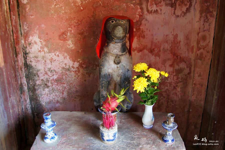 13↑来远桥在农历猴年兴建,狗年建成,因此桥的西端供奉着神狗,东端供奉着神猴