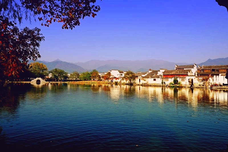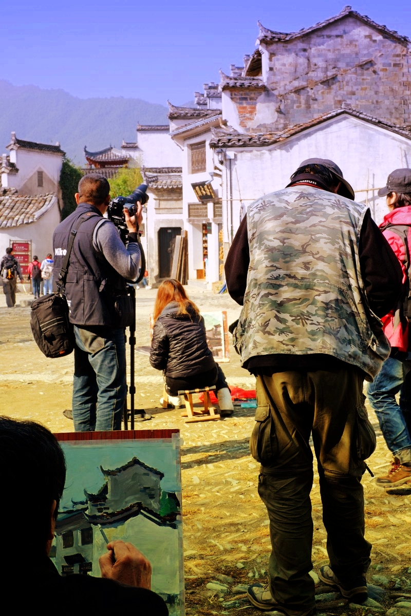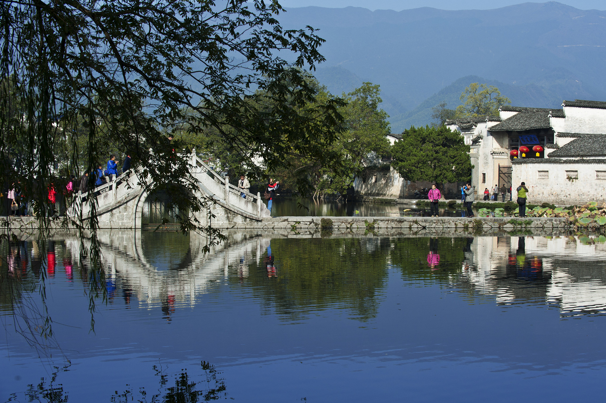 挤开拥挤的人群,离开你,到了宏村 ,和很多朋友来相会。
