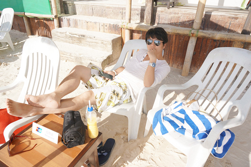 下午回到酒店的沙滩,坐在沙滩椅上晒太阳,nice~