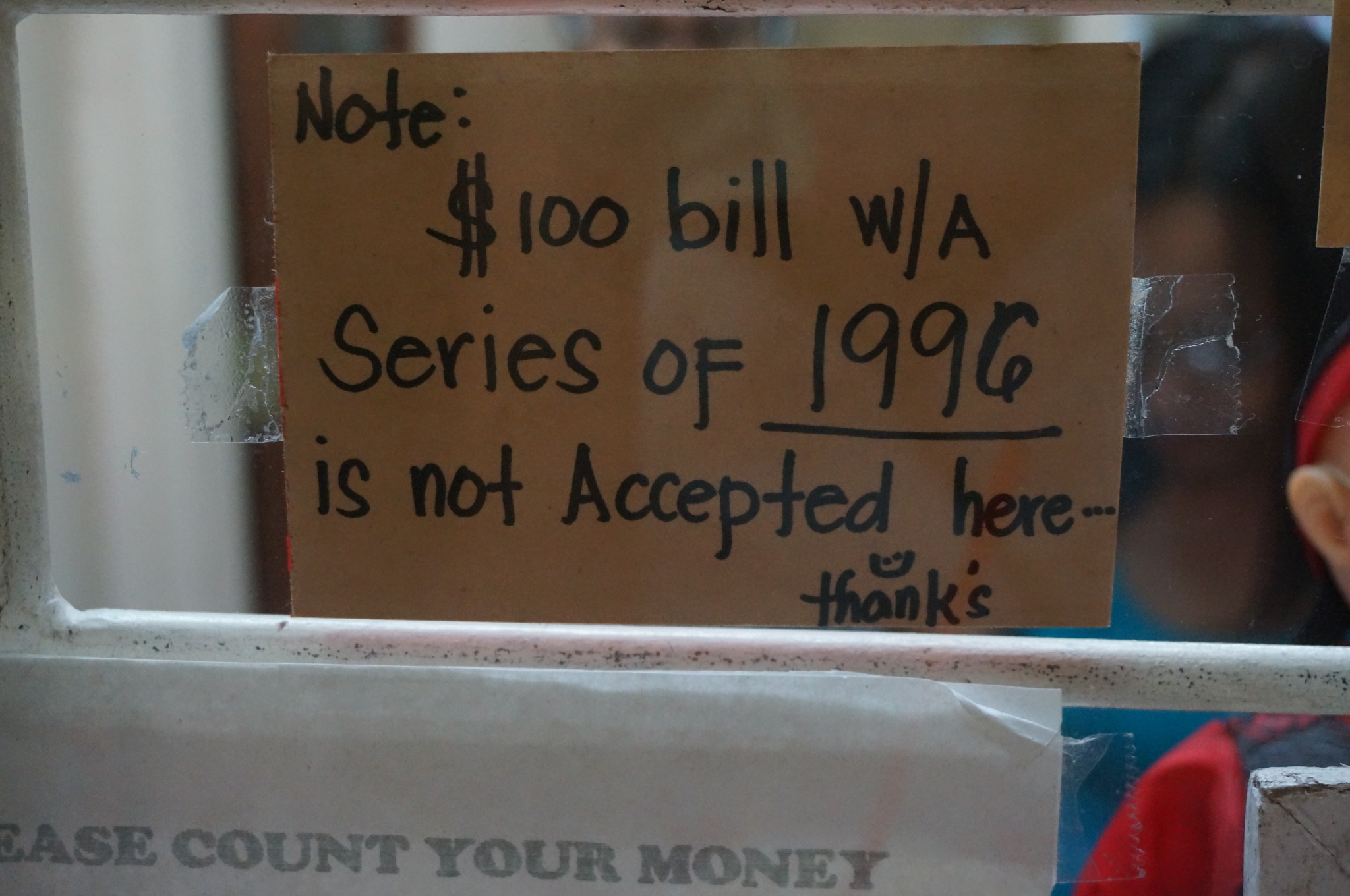 2 还是关于换钱 1996年的美金不能换啊!!!不知道为什么,在国内银行区美金的时候记得一定别要1996年的,有图有真像。