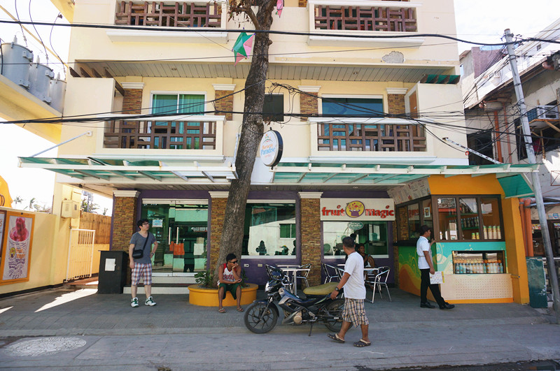 达到酒店,我们前三天入住的是一个离Dmall很近的小酒店,在main road上,干净舒适,酒店的服务人员的态度也很好,就是到10点就会停一下电。 Boracay Paradise Hotel 标准间 三晚6600p,酒店旁边就是一个卖沙冰的小店Fruit Magic,芒果沙冰非常美味。其实岛上到处都有卖Mango Shake的小摊位。80p一杯,新鲜又美味,但是有的时候味道很酸,可能跟当天菜场里的芒果质量有关。椰子沙冰也很不错。