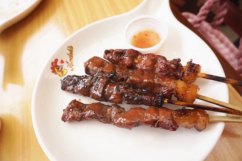 中我我们吃的是这家Andeky简称公鸡~ 标志这只公鸡的~ 岛上至少有五家~ 点了一份炒面。一份饭。6串BBQ,两杯饮料。花费355p。(人均RMB 28)省钱好吃。这个烤串BBQ带点甜味,和我们在liig海滩吃的味道好像,推荐~