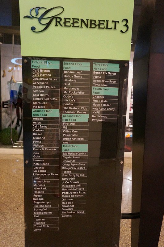 第二天睡到了自然醒,去逛Greenbelt了~ Greenbelt正如其名,绿化空间设计做得很好。分五个区域互相连通~ 可以逛的牌子也很多~ 大家可以看哈有没喜欢的牌子~ 我什么也没买~ 就去lush称了一斤半的肥皂~ 牛仔裤牌子不多~没发现LEE.