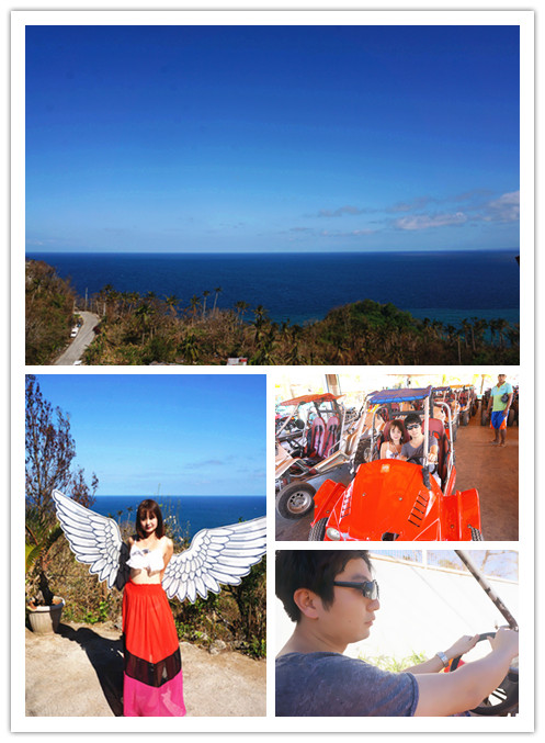 下午约好飞机上认识的两位童鞋一起去luho山顶去看看,开卡丁车上luho山顶两人一车,一车1000p。出发咯!看到下面全是湛蓝的海,一眼望不见边际,上面还有一对翅膀可以用来照相哦!