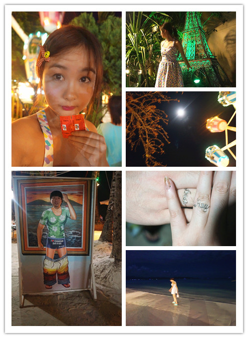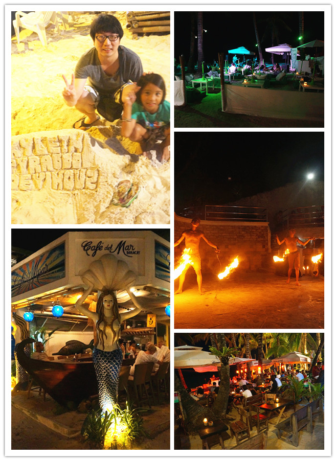 吃饱了。大满足,这个时候已经入夜了,夜晚的长滩岛 沙滩可是超级热闹的呢。