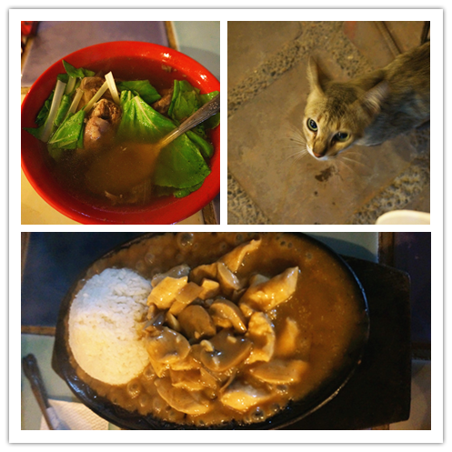 回dmall 吃饭,此时此刻我们的钱已经不多了~ 吃快餐咯~ 这里的快餐店的快餐的很好吃的~ 跟猪肉有关的食物都有点甜甜的~ 烧烤上面淋点柠檬汁也很美味的~