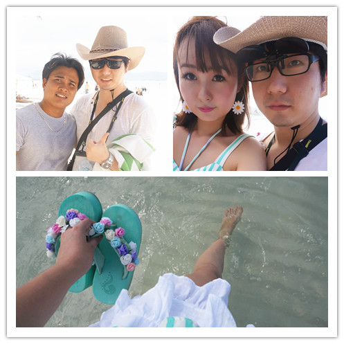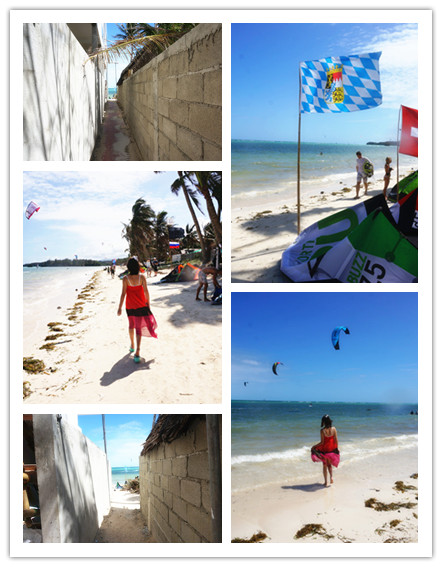 穿过dmall 就到了海边,蓝天,沙滩,阳光明晃晃的睁不开眼睛!终于看到海了!婴儿蓝色的海水和纯白的沙滩!昨天的舟车劳顿一扫而空!