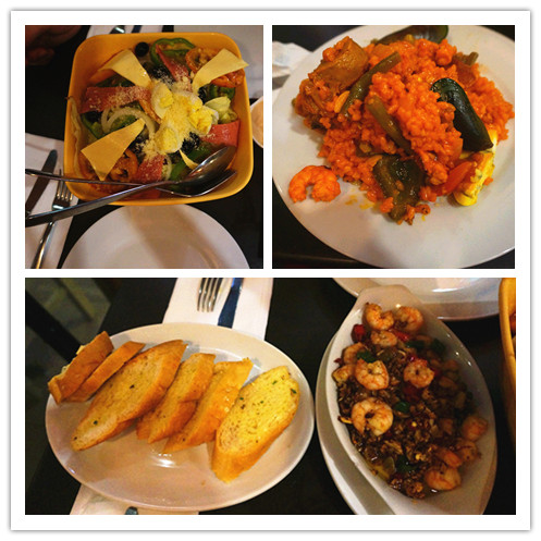一个炒饭,一个蒜蓉虾,一个沙拉 ,一共1580p。(OLE 人均RMB 150)是我们口味问题吗,也许老外爱吃呢,但是我们发觉所有来这里吃饭的人貌似都没吃完。那几个菜的图片如下。