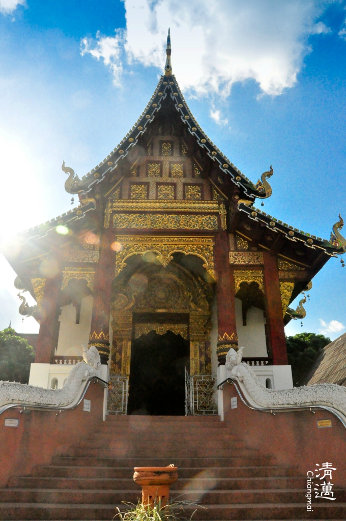 位于清迈 古城 旧市街 PhraPokklao Road 的南端。它因为一座极具视觉冲击的大塔而闻名,创建于1411年,在清迈 市内六大寺庙中最为著名,它与 帕辛寺 并列为清迈 地位最崇高的寺庙。它基本上位于古城 的正中心,门口点缀着蛇和孔雀的装饰,内部有巨大的佛像。