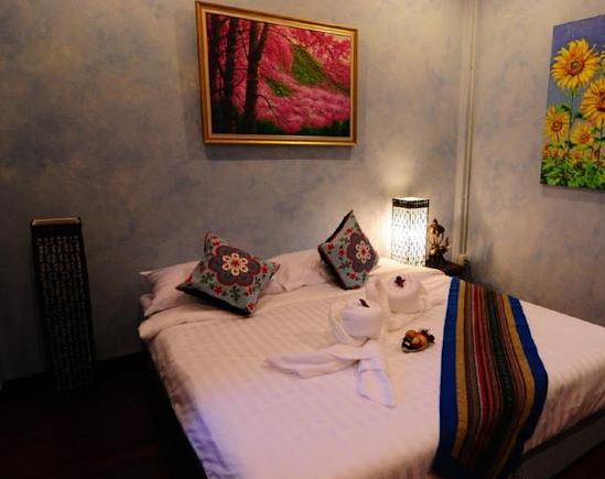 从拜县回到清迈的晚上我们还是本着勤俭节约的原则订了一家实惠型的酒店——Saithong Guest House,大床房150RMB一晚。这家酒店同样在古城内,位于塔佩门附近的一条小巷子,非常安静,终于在清迈睡了一个好觉。不过房间比较潮湿,设施很旧,蚊虫较多,还好有蚊帐。