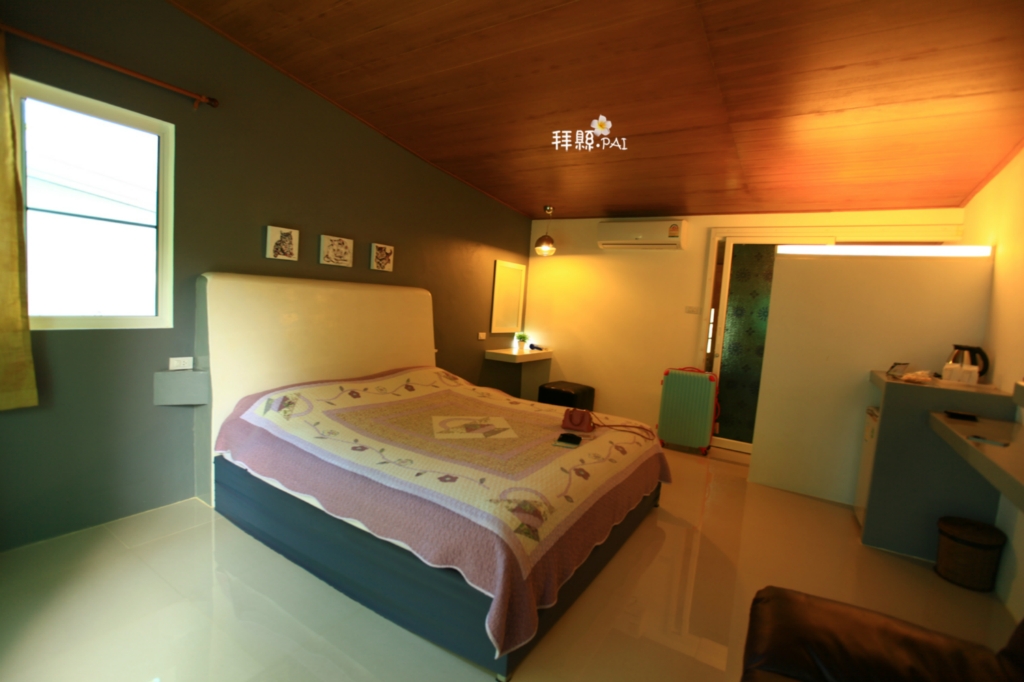 拜县的前两晚,LZ订了Agoda上评分很高的Kuad Khon Thoe Pai Cottage(孔敬别墅酒店),这家酒店绝对是此行最大的亮点,也是我们住过的最温馨最用心经营的酒店。孔敬酒店位于拜县的瑶区,距离镇中心7公里路,旁边200米就是小清新景点之一的草莓园。这家酒店是一对夫妻经营的,环境非常的天然静瑟,无敌山景,无边泳池,台球桌,公用电脑,美味早餐,房间设施也非常齐全,打扫的非常干净,最重要的是老板超级NICE,每天免费把我们接送到镇上,晚上9点多从夜市走出来,远远的就看到老板站在街口向我们招手接我们回去,无比的窝心。我们定的高级小屋365RMB一晚,虽不是独栋,但也很舒适。记得早在八月份的时候就订过这家酒店,当时是淡季,只要200RMB不到,可惜因为各种原因行程夭折了。