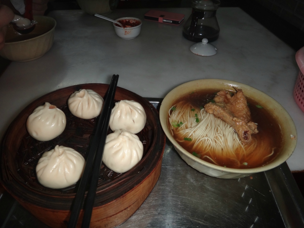 小笼包和大排面。苏州的小笼包似乎都是用大包子面做皮,不是饺子皮,这两样东西相比合肥味道咸少甜多。苏州的面条做得比合肥精细,炒饭则不如。