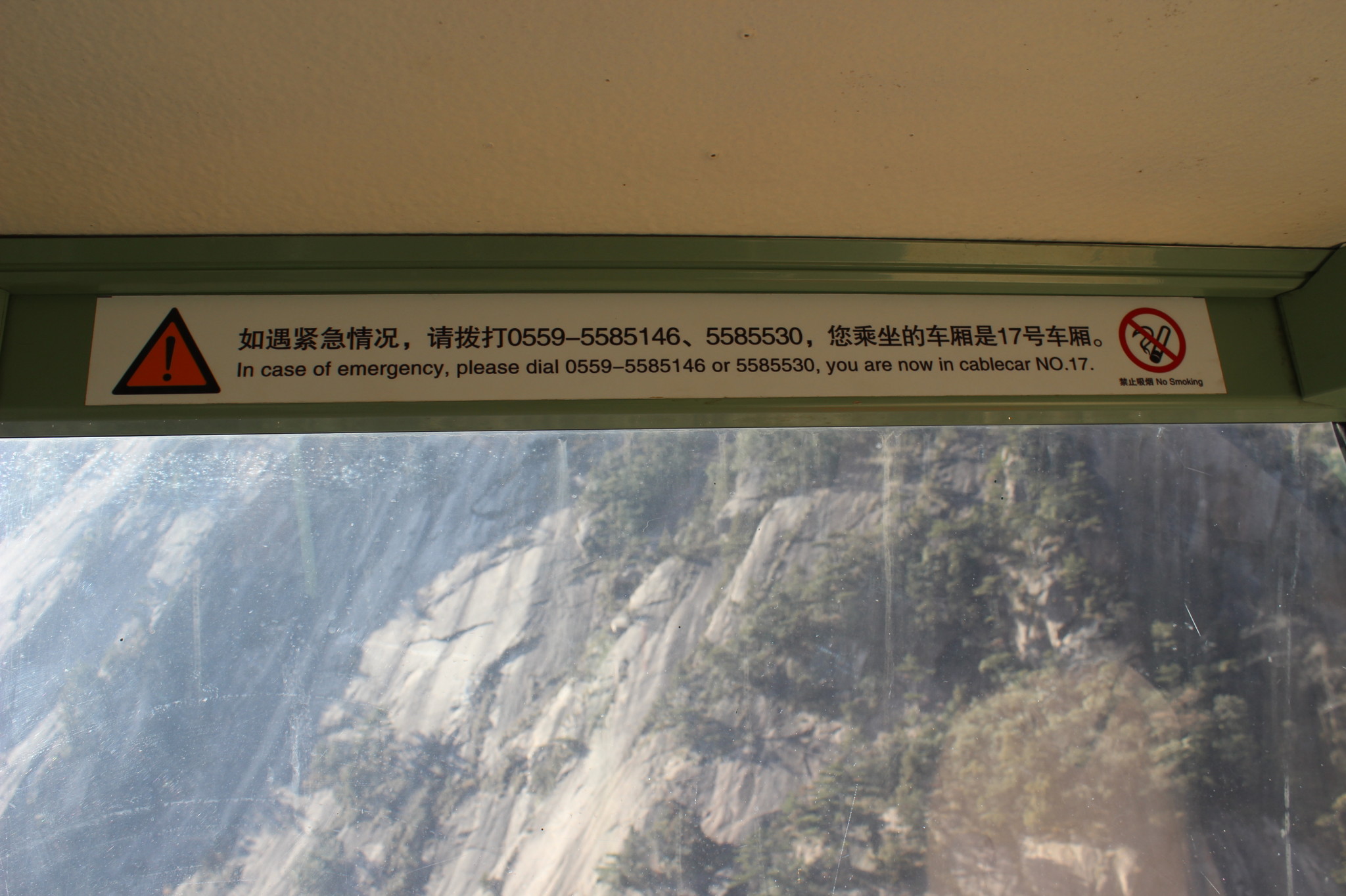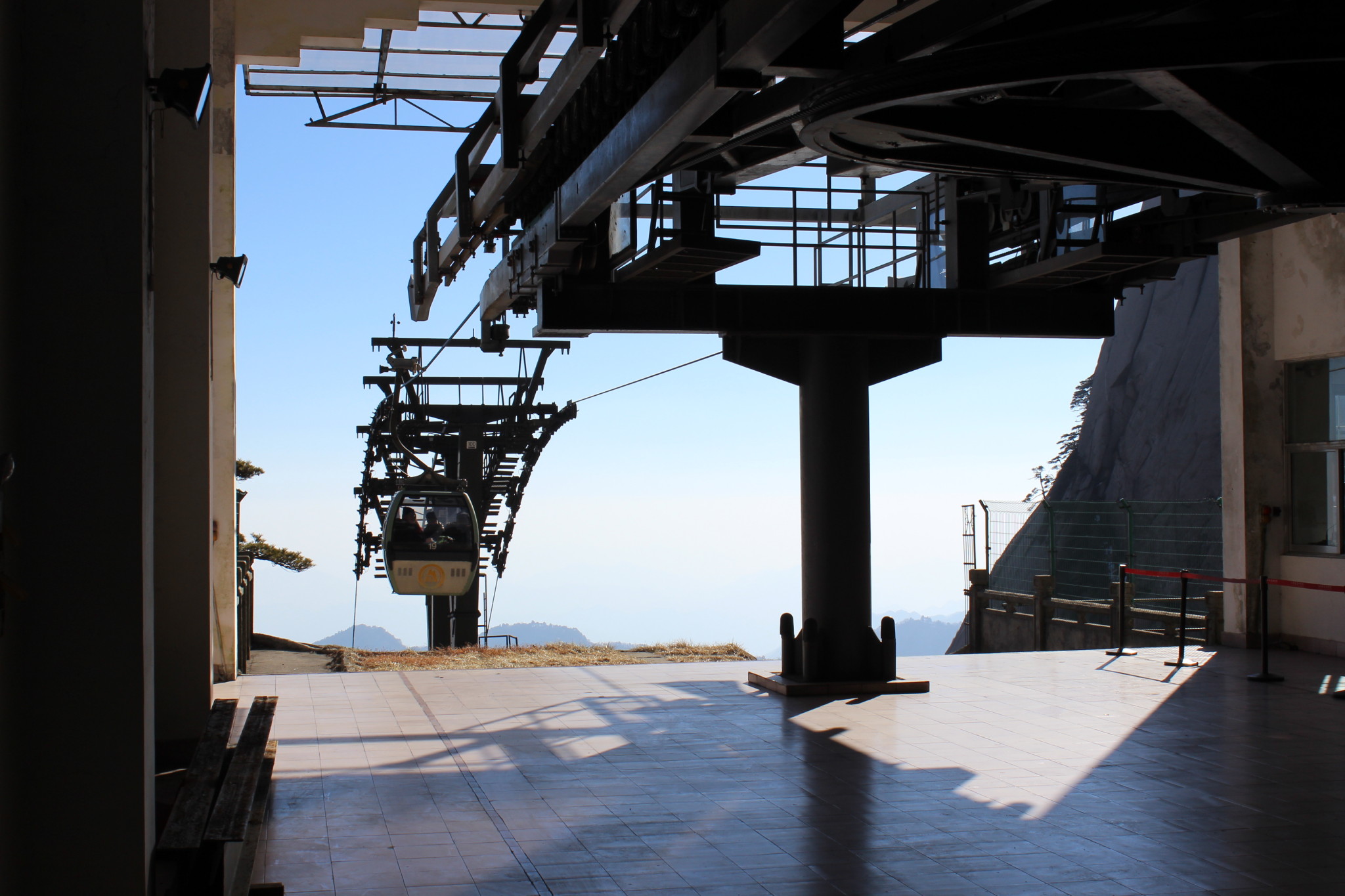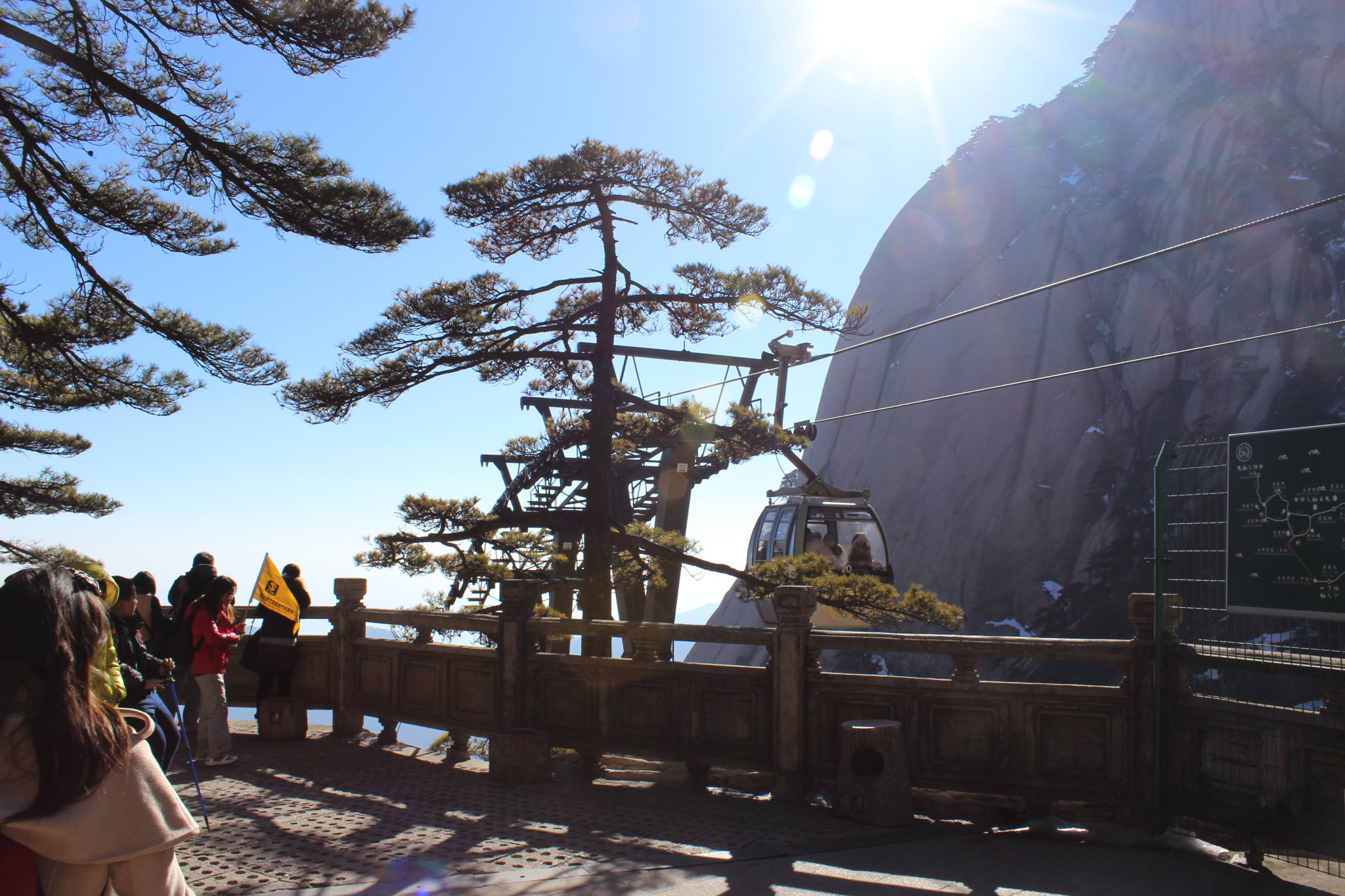 黄山 的缆车不同于别的山峰,缆车的爬行坡度是比较夸张的,下面就是万丈深渊,相当惊险刺激,所以有恐高症的朋友别往下看,忍个10分钟就到了,玉屏索道的缆车是6人一辆,循环不间断上下山,所以淡季经常会看到只有2个人的缆车或者空车,后山的云谷索道缆车可以乘很多人,下面就发一些在缆车上面拍摄的图片,大家可以自己感受一下,但是缆车其实是相当安全的,所以不要有过重的心理负担,就当是在乘飞机,尽情享受壮观的景象