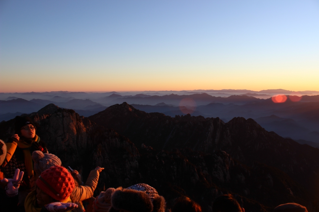 众所周知,光明顶 是看日出绝佳的位置,所以一般早上6点半之前就应该去抢一个摄影位,每天日出的时间都不一样,可以提前一天问导游或者看酒店的信息,我去的这2天虽然是淡季,但是看日出的人还是相当多的,如果是旺季的话估计会人山人海了吧,所以建议大家早做准备,另外就是早上很冷,记得带好帽子和手套,保护好耳朵,因为耳朵很容易着凉的