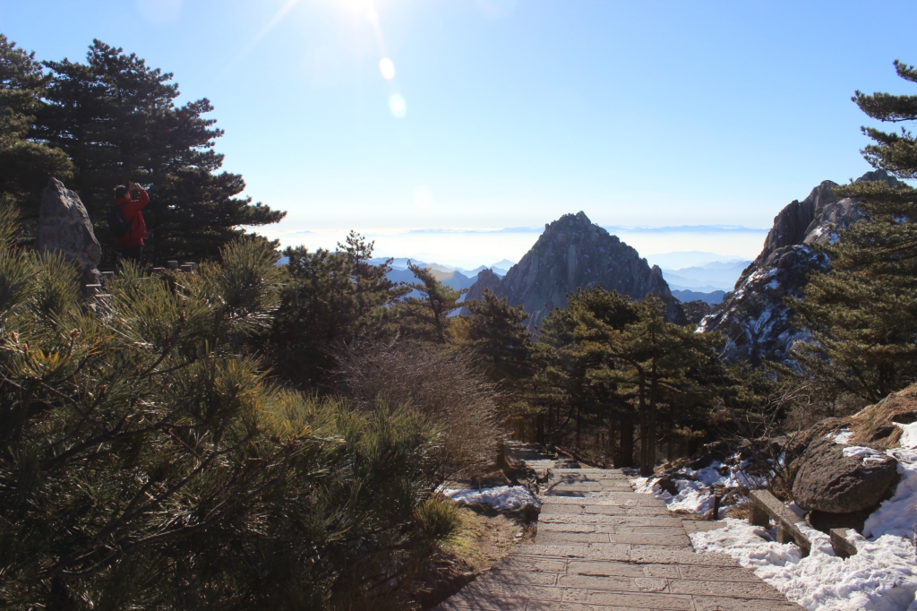 3.黄山 皆石阶,且多险段,登山时身体宜前俯,且开始登山时不宜过速,下山尤需缓步