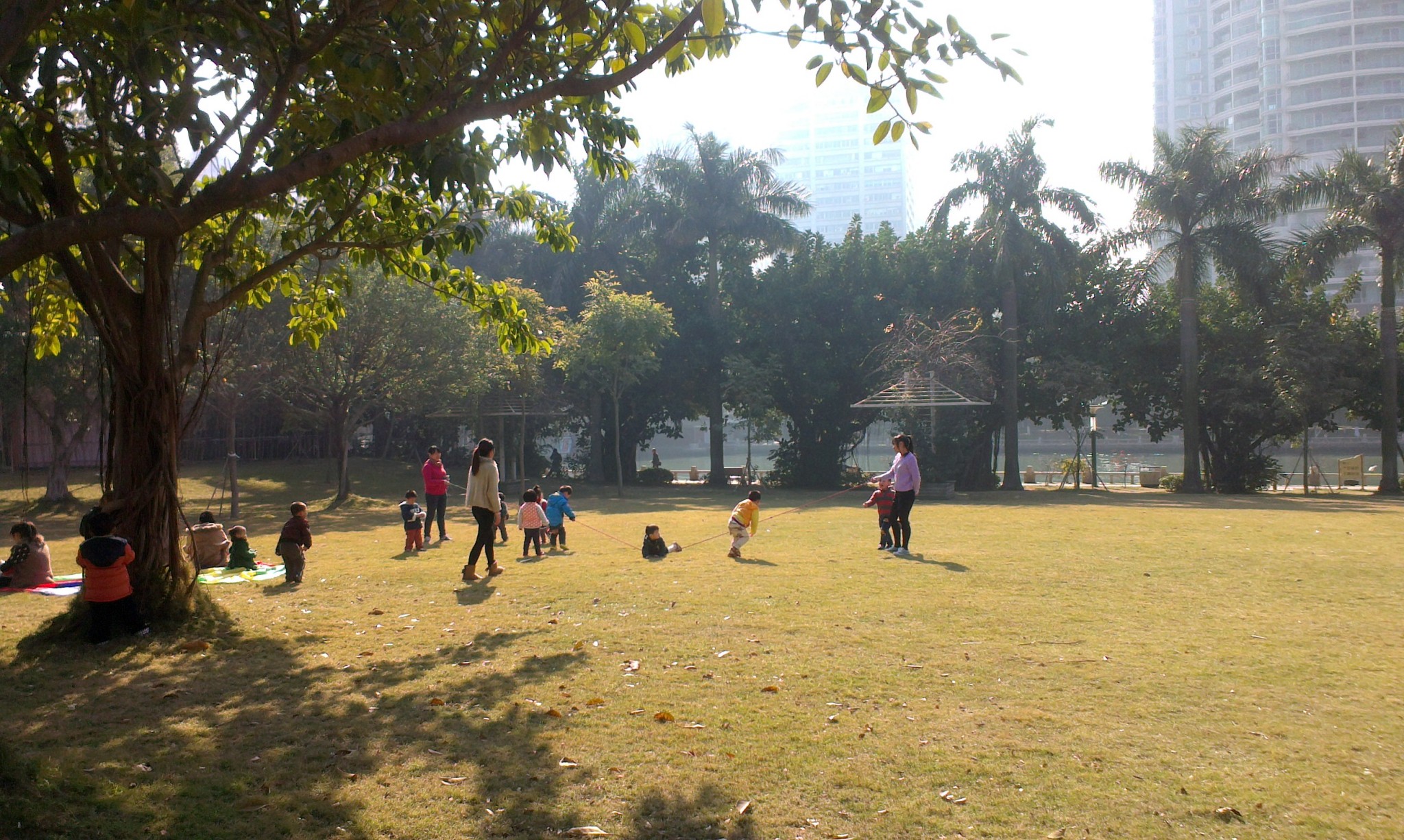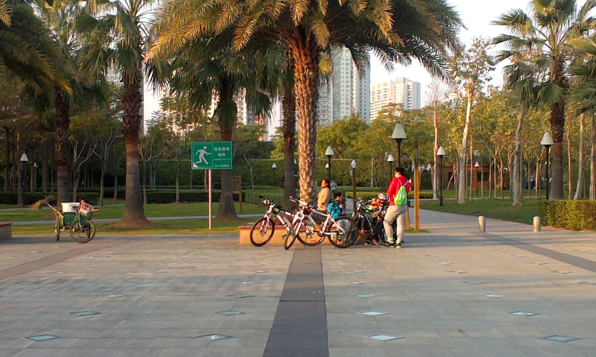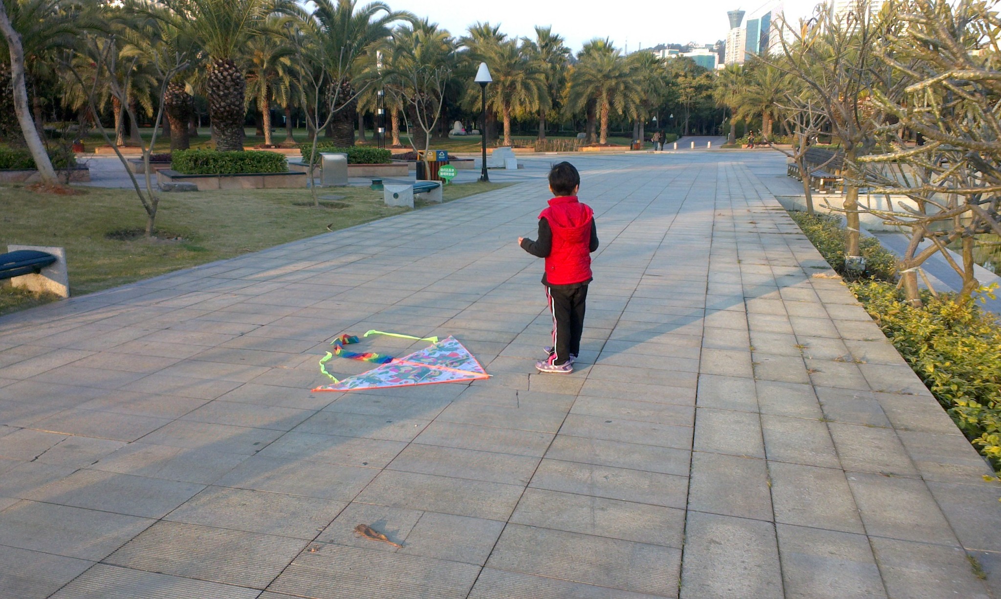 1.17 白鹭洲公园 ,坐在中心广场的台阶上看孩子们玩耍。