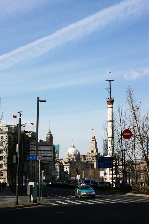 在冬日没啥好逛的地方,于是搭乘4号线,海伦路站从2号口出来,马路上有指向创意园区的牌子,沿着海伦路走,右拐进辽宁路,过了一座桥就到了沙泾路,远远就能看见高耸的烟囱了。
