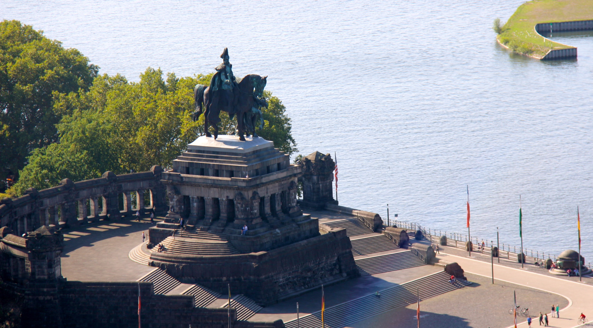 志之角上建了一个107级阶梯的台基,上面是重塑的一尊高14米的威廉一世皇帝的骑马雕像。