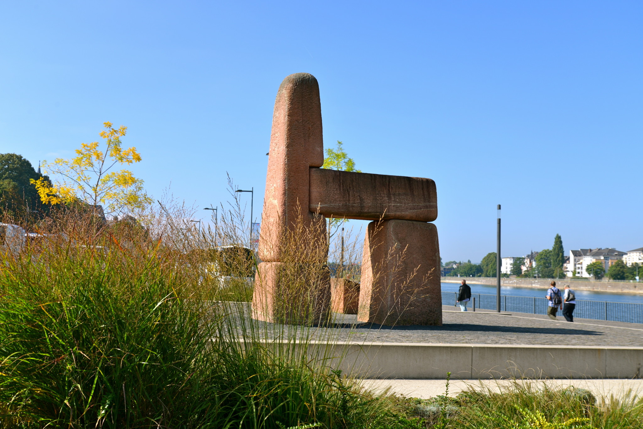 转眼间车到了科布伦茨,停好车抬头看见边上的标示雕塑,颇有地标味道。
